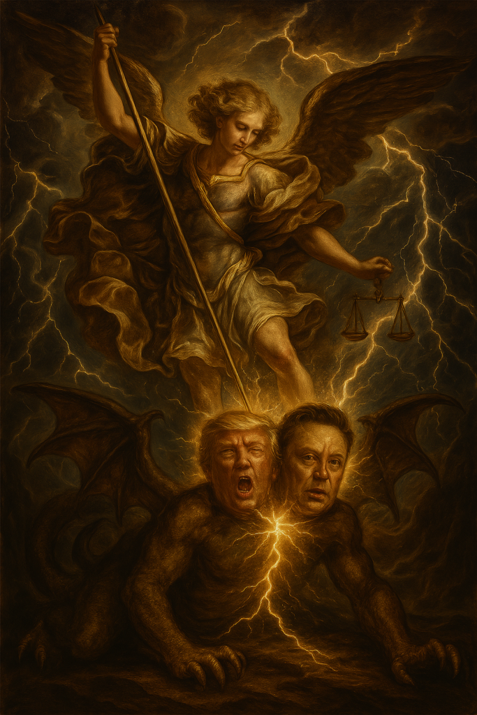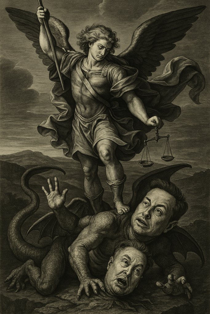 Saint-Michel vanquishing the Trumpmusk.
